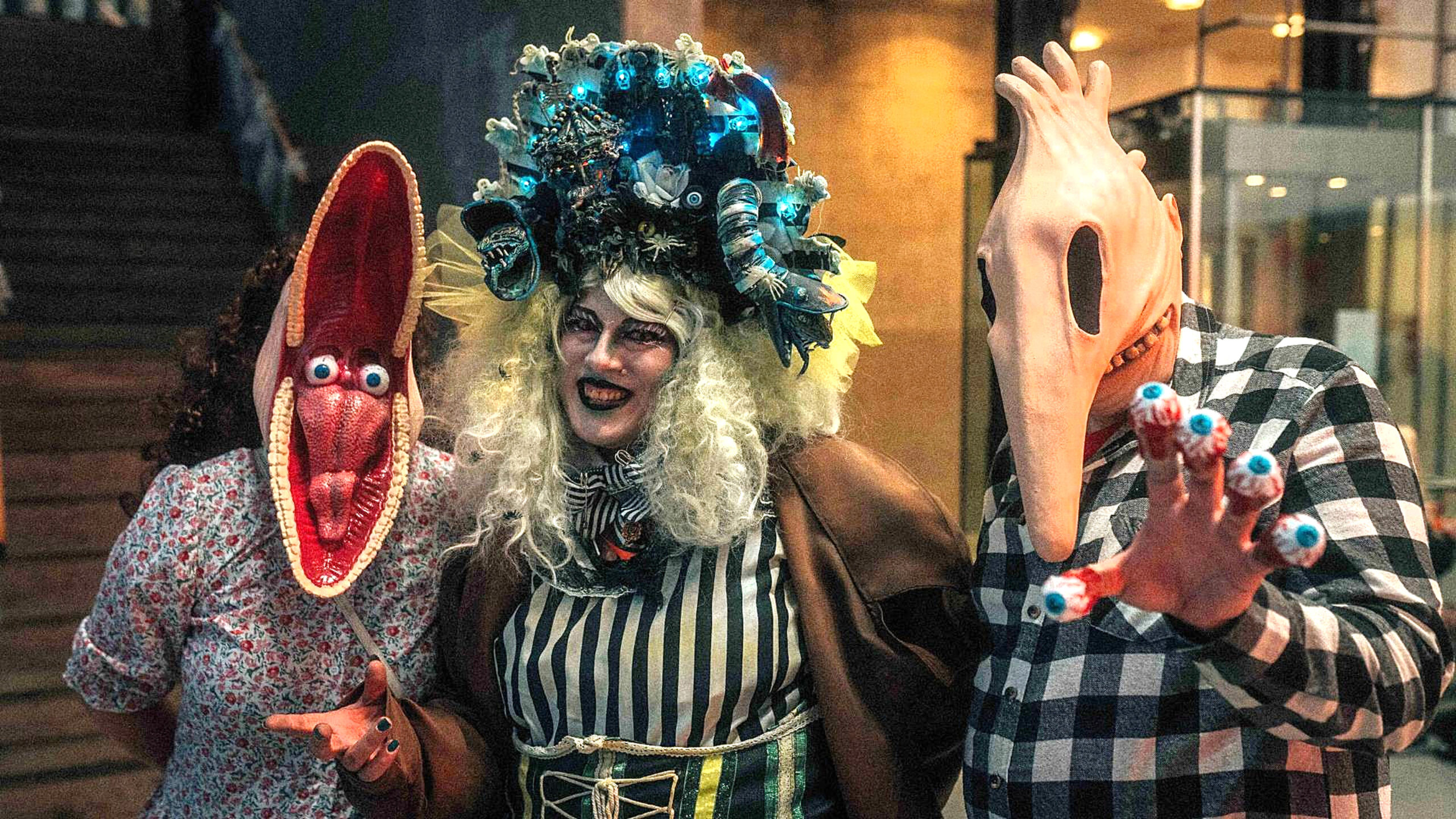 Neben Mitgliedern der Filmcrew sind diverse andere Grusel-Akteure vor Ort und machen zu DJ-Musikklängen die gespenstisch dekorierte Halle unsicher. Mit Hellboy und Knochenmann, mit dem Horrorclown aus Stephen Kings „Es“ oder dem Geisterjäger-Team aus „Ghostbusters“ kann man an verschiedenen Selfie-Stationen – etwa auf einem blutverschmierten Bett – auch Fotos machen. Einige Markthallenstände beteiligen sich auch zu späterer Stunde noch an den Halloween-Aktionen, die bis etwa 21 Uhr dauern sollen. Für die Party am Samstag wird ein Eintritt von voraussichtlich 8 Euro erhoben, so die Veranstalter.